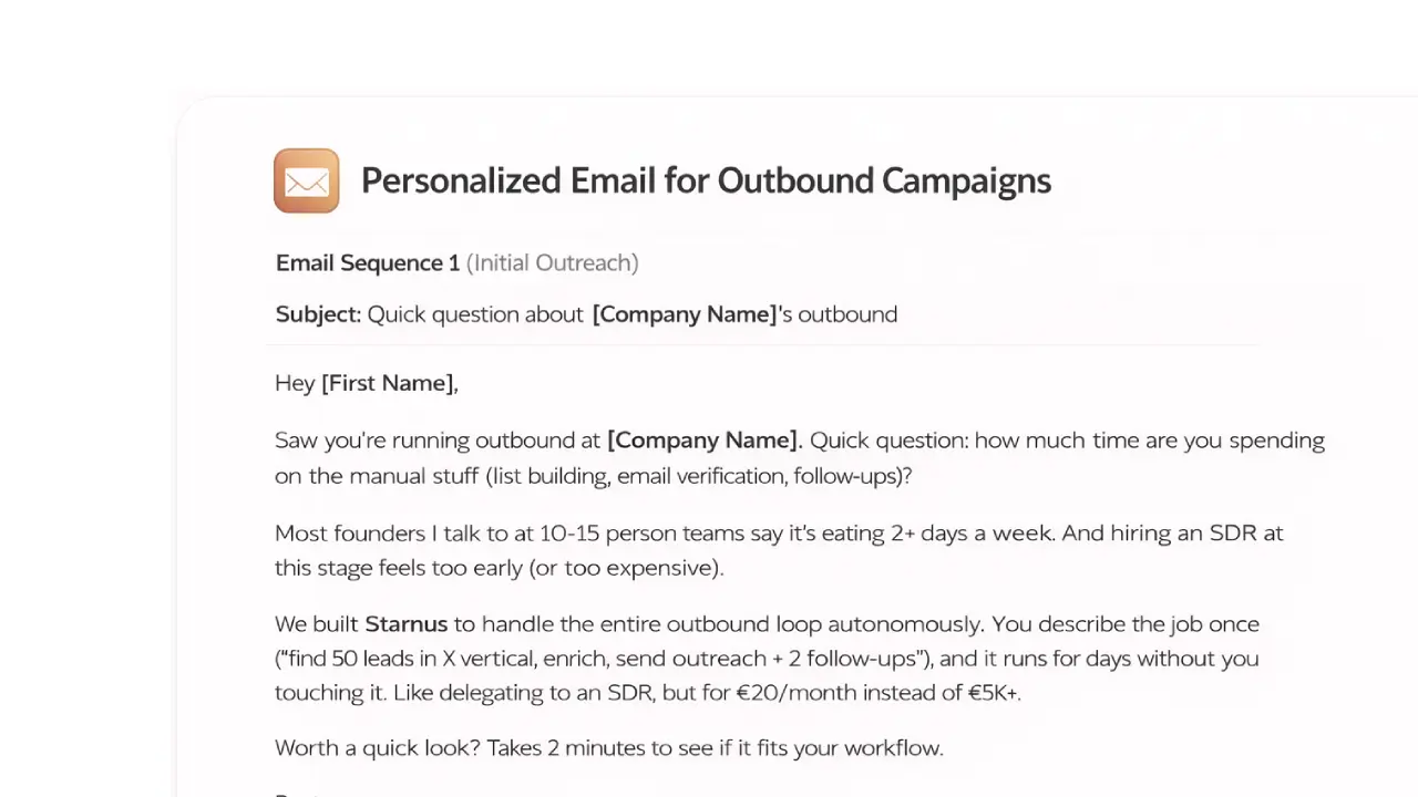 Starnus gives you one simpler layer for lead sourcing, enrichment, personalization, outreach, and follow-up, so your outbound workflow feels connected instead of fragmented.
